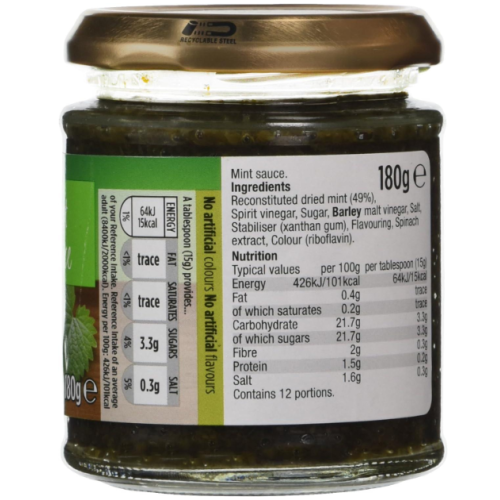Mint sauce—classic vinegared mint for roast lamb, peas and dressings. 180g jar.
